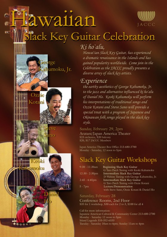 Hawaiian Slack Key Guitar Celebration! Location: The George & Sakaye Aratani/Japan America Theatre Date: February 29, 2pm
